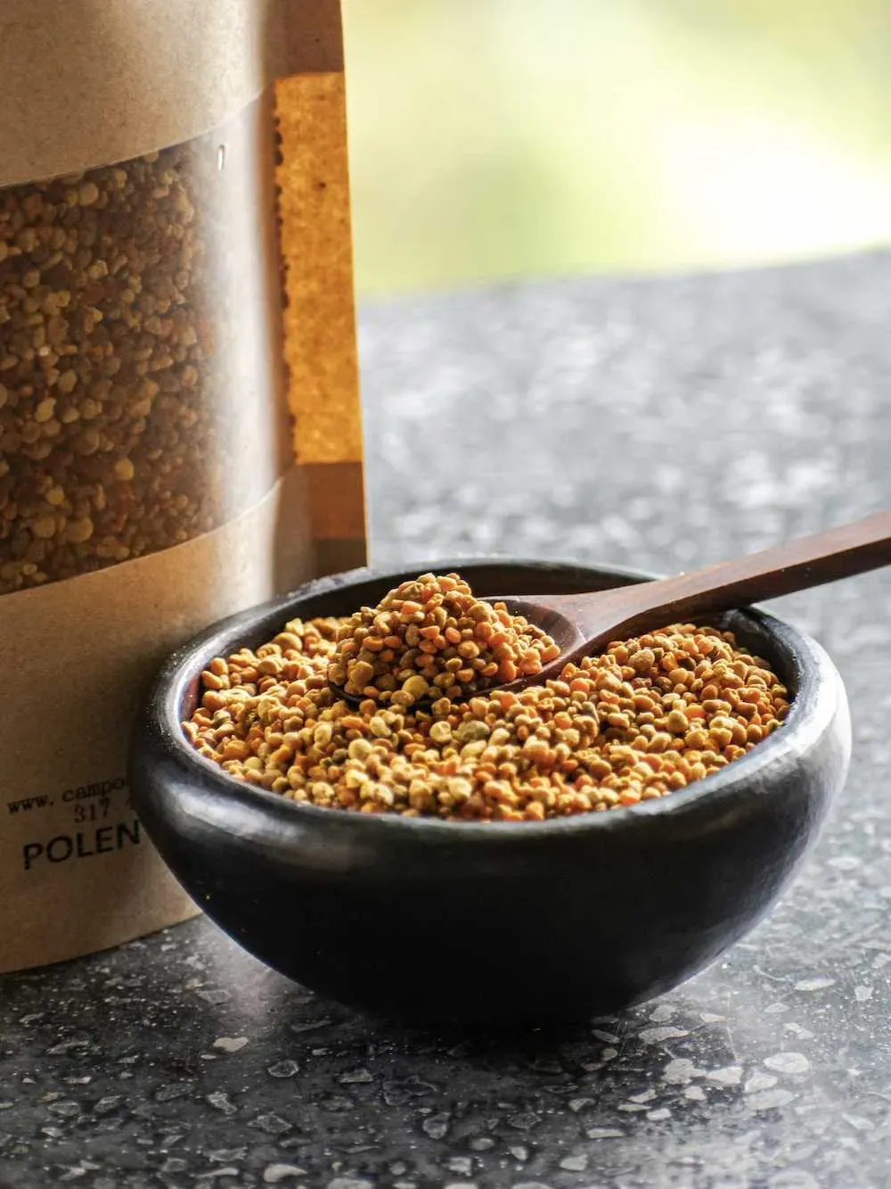 El polen es un producto apícola que contiene más de un 25% de proteína, además de carbohidratos, aminoácidos esenciales, ácidos grasos, vitaminas y otros componentes.
